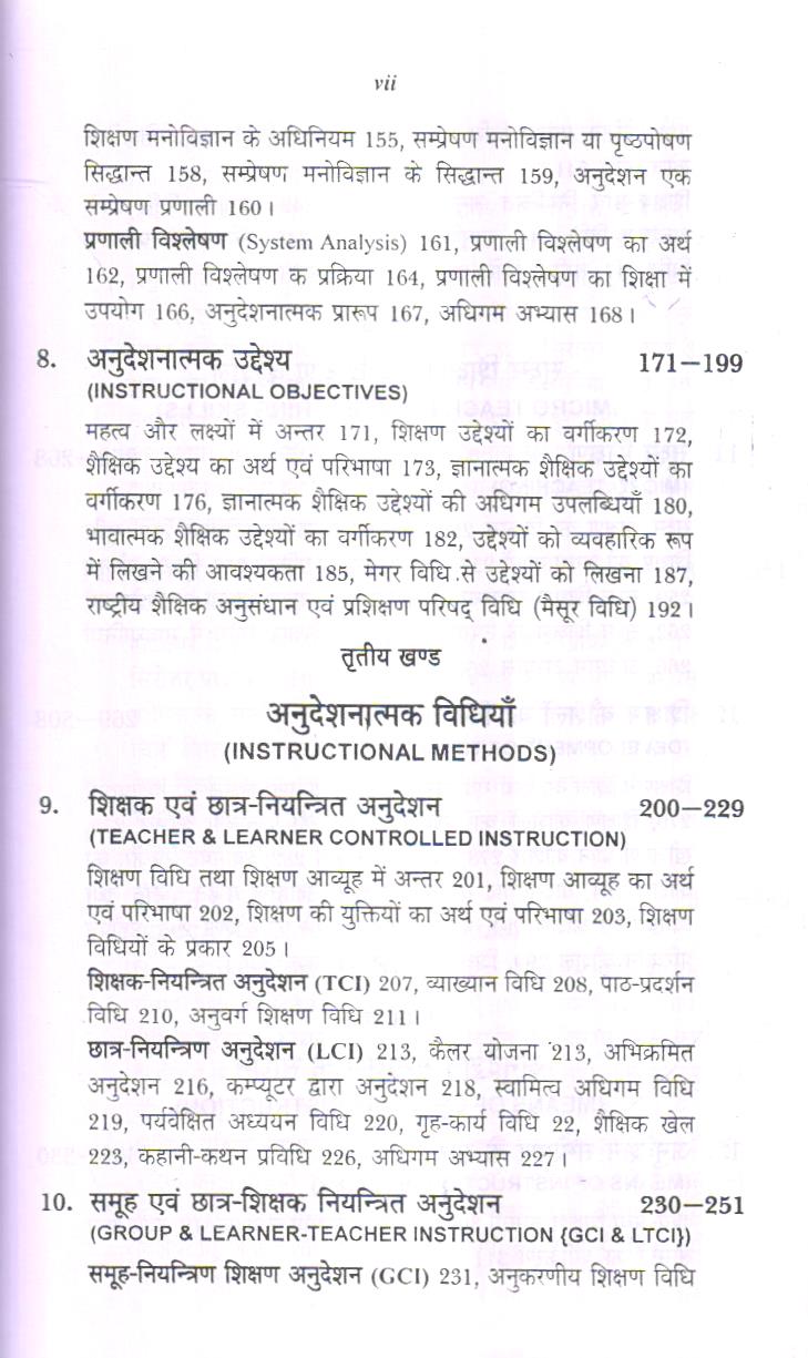 इस पुस्तक में प्रभावशाली शिक्षण प्रक्रिया के लिये- ‘पाठ्क्रम विकास एवं अनुदेशन’ (Curriculum Development and Instruction) को प्रस्तुत किया गया है। पाठ्यवस्तु को पाँच खण्डों में विभाजित किया गया है। प्रथम खण्ड-‘पाठ्यक्रम नियोजन एवं निर्माण’ को चार अध्यायों में दिया है। पाठ्यक्रम नियोजन एवं निर्माण को