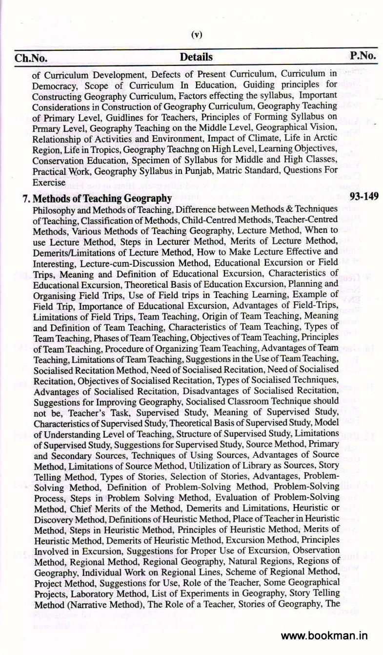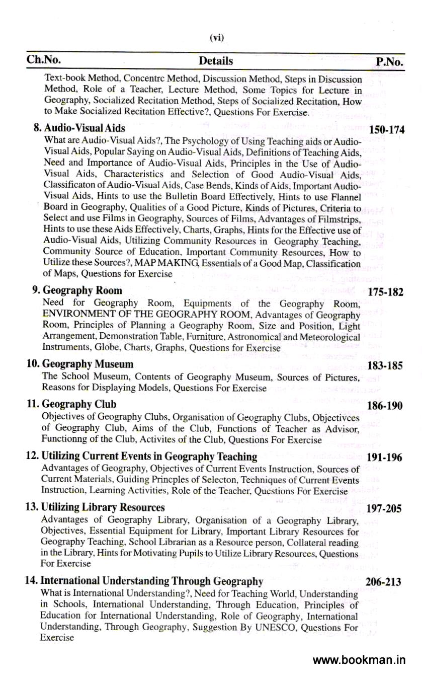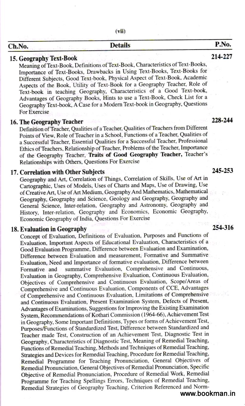 Beginning with the narration of the Historical Development of Geography teaching and ending with Lesson Plans in Geography for the guidance of future teachers. This book contains chapters on Meaning, Nature, subject matter, Branches and Scope of Geography, Importance of Geography; Content and its analysis up to the Secondary level; Objectives and value of Geography, Geography syllabus; Methods of Teaching Geography; Audio-Visual Aids; Geography Room; Geography Museum; Geography Club, Utilizing Current Events in Geography Teaching; Utilizing Library Resources; International Understanding through Geography; Geography Text- Book; The Geography Teacher, Correlation with other Subjets; Evaluation in Geography; New Type Tests and Lesson Planning in Geography.